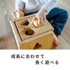 丸、三角、四角という形を認識する為の、1~3歳頃に遊べる知育玩具です。箱のふたの上や横から形を合わせた積み木を入れて遊ぶことで、片付ける作業を覚えることもできます。