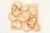 絵付けをした材料を、一つずつ丁寧に糸のこで切り抜いていきます。現在子どもを育てているママさん職人の手仕事です。自分たちの子どもが使うことも思い浮かべながら、日々素材と向き合っております。