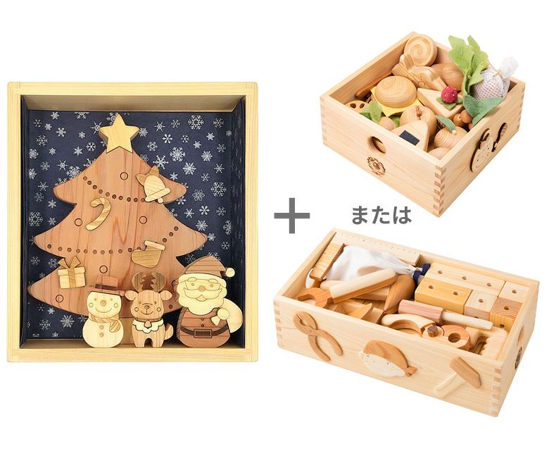 クリスマスの贈り物に、かわいいツリーと長く遊べる人気のおもちゃをセットにしました。