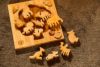 ゾウ、ライオン、カンガルー、ネコ、イヌなど、愛らしい表情の11種類の陸の生き物たちが木のパズルになりました。