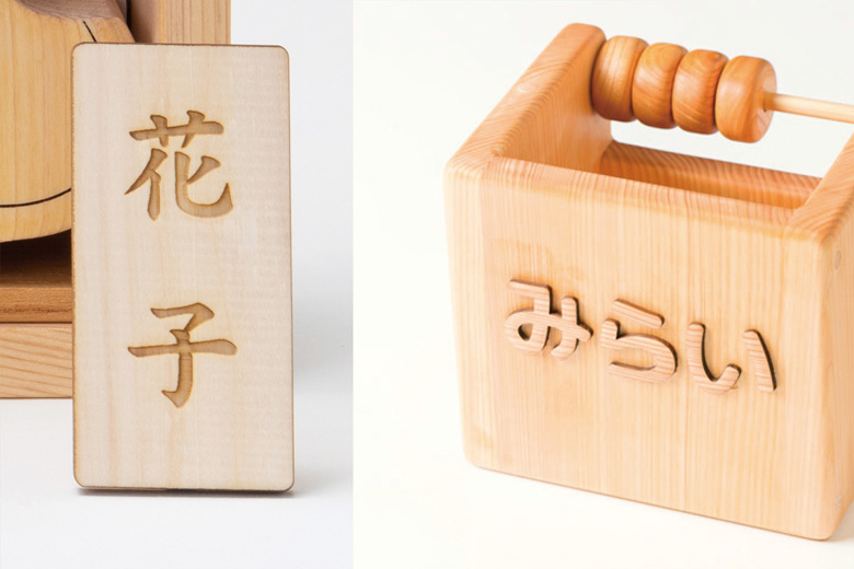 [名入れオプション]を追加いただくと、木の立て札にお名前を刻印することができます。