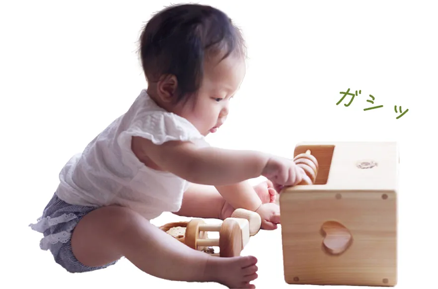 じんわりと手になじむのが木の良さ。つるつる・すべすべ・ぽこぽこいろんな感触を楽しんでください。