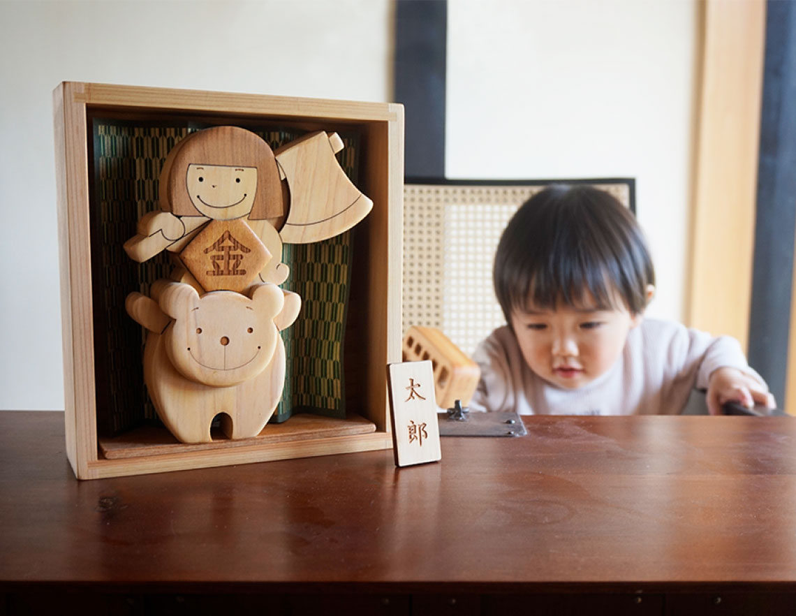 端午の節句の贈り物に、木の温もりあふれる「わんぱく五月人形 (金太郎)」、