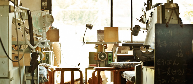 緑がそよぐ田んぼを時々眺めながら、木を運び、木を削り、木を磨き、大切に木箱に詰めます。山のくじら舎の商品は元気なお母さん達が中心になって、一つ一つ心を込めて手作りしています。