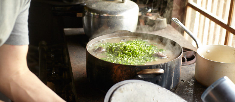 高知の新鮮な野菜をたっぷり使った味噌汁と、採れたてのたまご。そして玄米ごはん。派手ではないけれどおいしい温かなご飯で午後からも力いっぱい仕事をします。朝早くに働き始め、夕方に仕事を終えたら、今度は家族のご飯を作ってゆっくりと夜を過ごします。