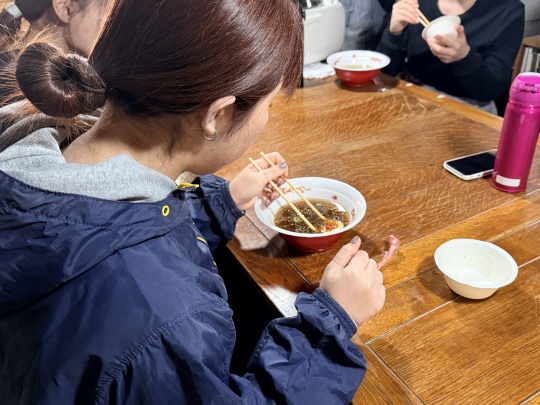 山のくじら舎スタッフ一同おいしいラーメンをいただき、